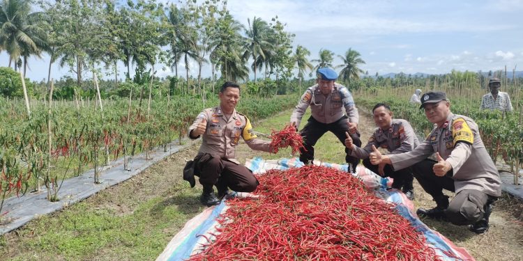 Giat Panen Cabai di Kebun milik Bhabinkambtibmas Polsek Damsol, Kapolres Beri Apresiasi.