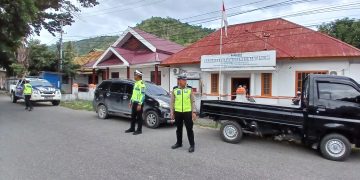 Personil Satuan Lalu Lintas (Satlantas) Polres Donggala yang tergabung dalam Satuan Tugas (Satgas) Kamseltibcarlantas OPS Mantap Brata 2023-2024 aktif melaksanakan kegiatan pengaturan lalu lintas di sekitar kantor Komisi Pemilihan Umum Daerah (KPUD), Badan Pengawas Pemilu (Bawaslu), gudang logistik, serta wilayah dalam kota, Minggu (17/12/23)