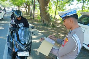 Selain itu juga petugas juga memberikan blanko teguran kepada pengendara yang tidak dapat menunjukkan kelengkapan administrasi kendaraan.