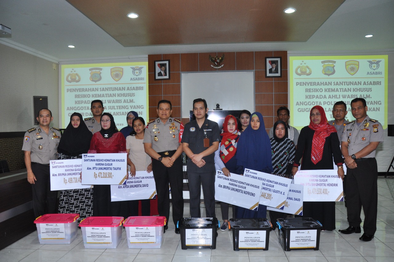 PALU, POLRESDONGGALA.ID – PT Asabri memberikan Santunan Risiko Kematian Khusus (SRKK) kepada keluarga atau ahli waris anggota Polri di jajaran Polda Sulawesi Tengah (Sulteng) yang gugur dalam menjalankan tugas saat bencana yang terjadi di Palu, Sigi dan Donggala (Pasigala) pada September 2018 yang lalu.