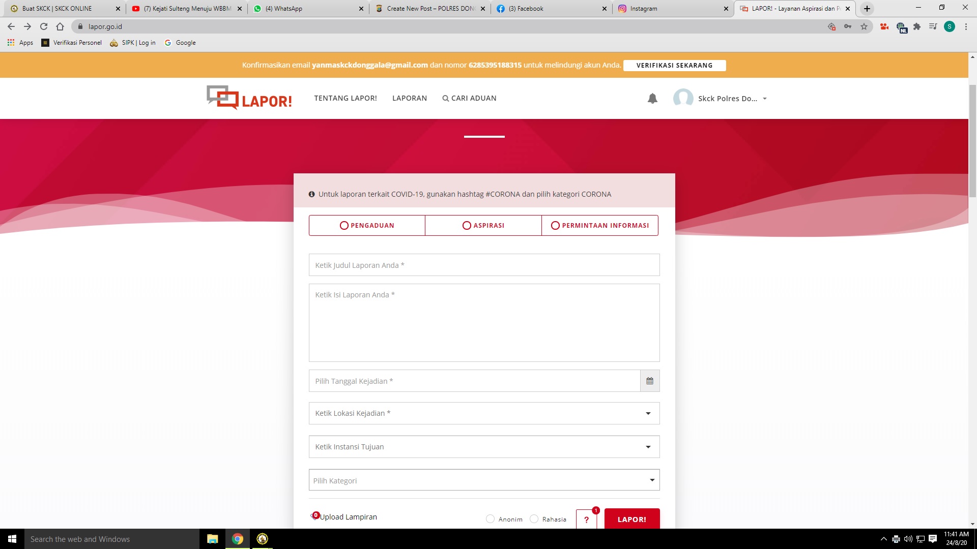 PENGELOLAAN PENGADUAN SP4N SKCK POLRES DONGGALA
