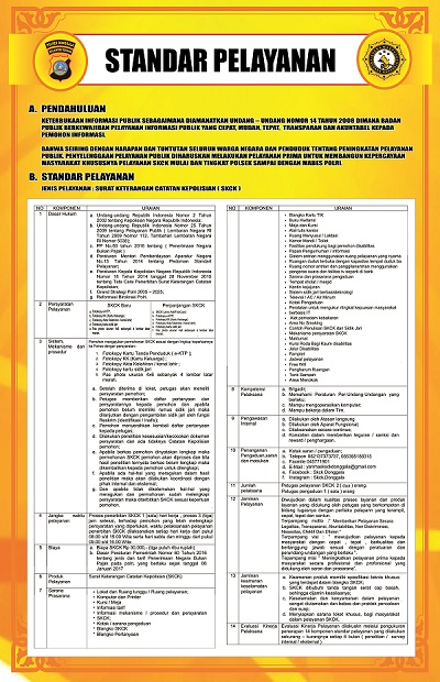 7. Standar Operasional Prosedur pelayanan masyarakat bidang penerbitan SKCK (Surat Keterangan Catatan Kepolisian) online di Satuan Intelijen keamanan di masa pandemi Covid-19. file:///D:/AAA%20PELAYANAN%20SKCK/DATA%20YANG%20DIPERLUKAN%20UNTUK%20ZONA%20INTEGRITAS/KUMPULAN%20SOP/SOP%20PELAYANAN%20SAT%20INTELKAM%20covid%2019/1.%20SOP%20REFORMASI%20BIROKRASI%20POLRI%20SKCK%20COVID%2019.pdf
