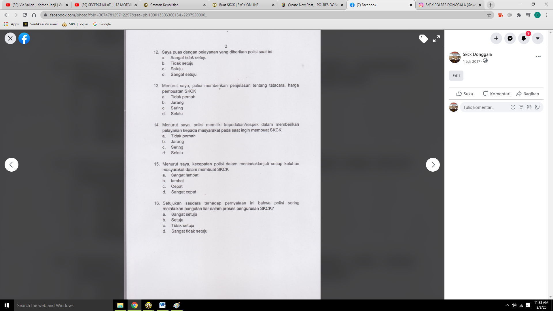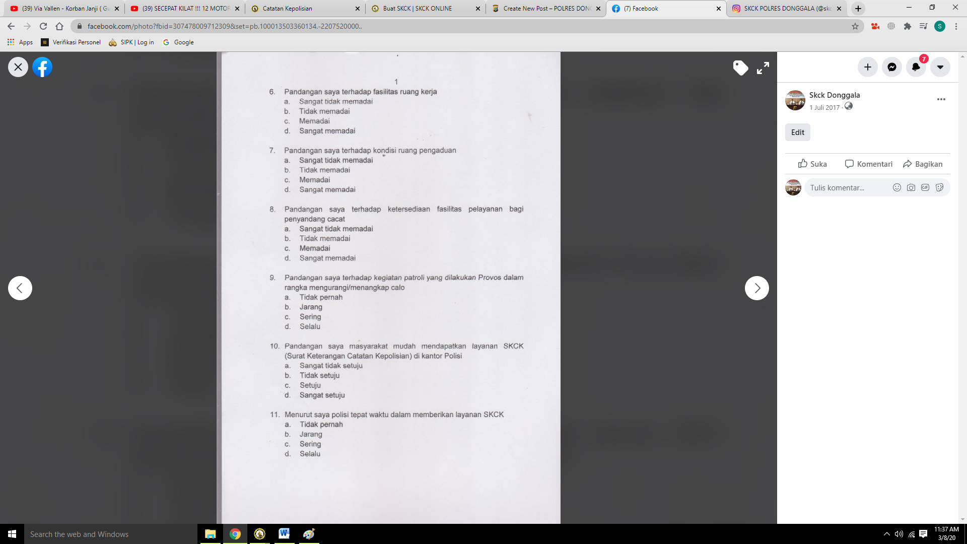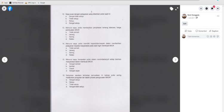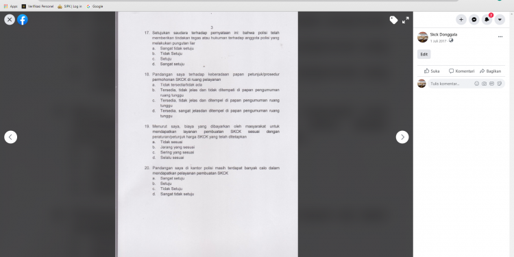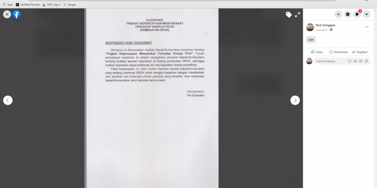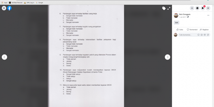 Untuk bahan evaluasi kinerja pelayanan SKCK, Satuan Intelkam Polres Donggala menyediakan sarana dan prasarana survey kepuasan masyarakat
