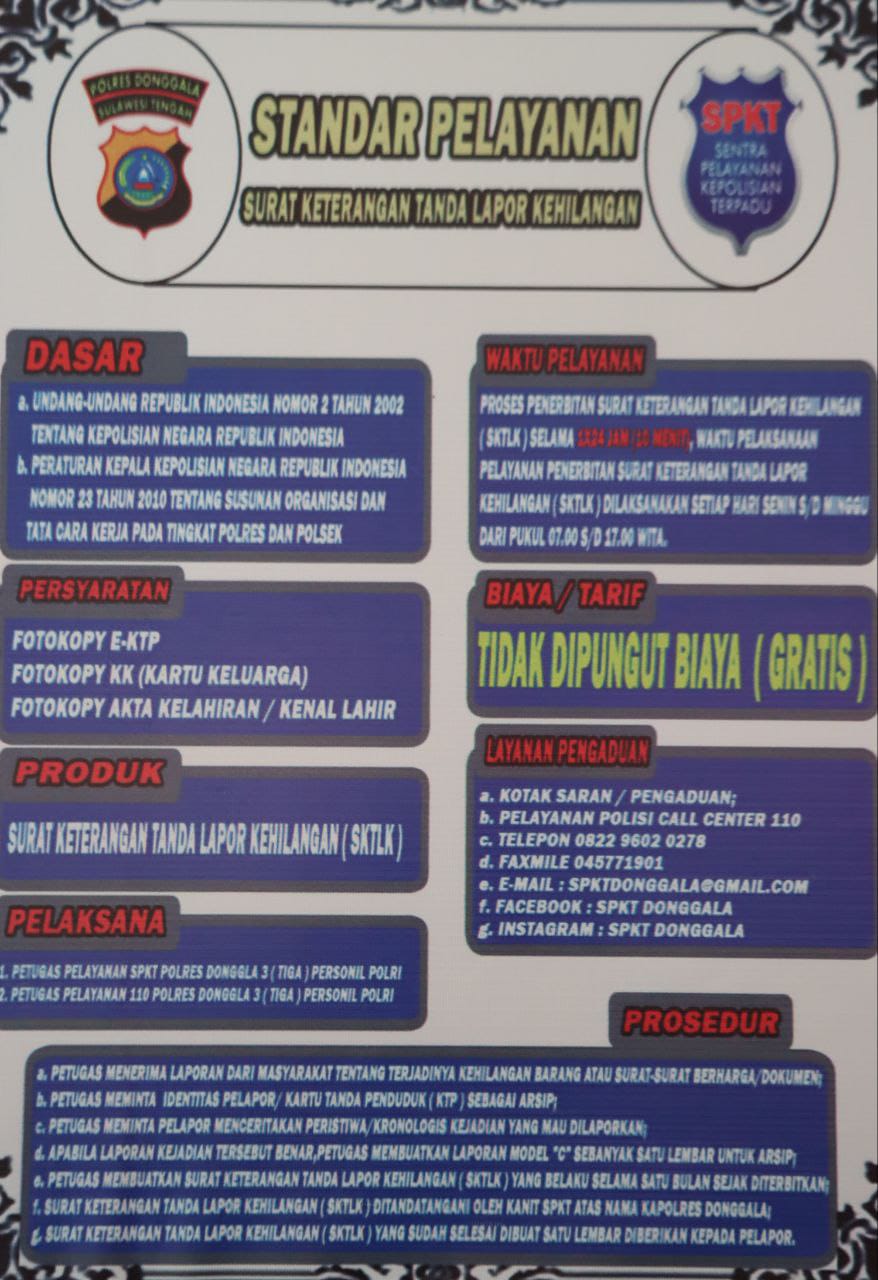 Standar Pelayanan SKTLK Polres Donggala ini memberikan gambaran yang jelas mengenai prosedur, persyaratan, dan waktu pelayanan yang harus dipenuhi oleh masyarakat. Tujuannya adalah untuk memberikan pelayanan yang cepat, mudah, dan transparan kepada masyarakat yang mengalami kehilangan.